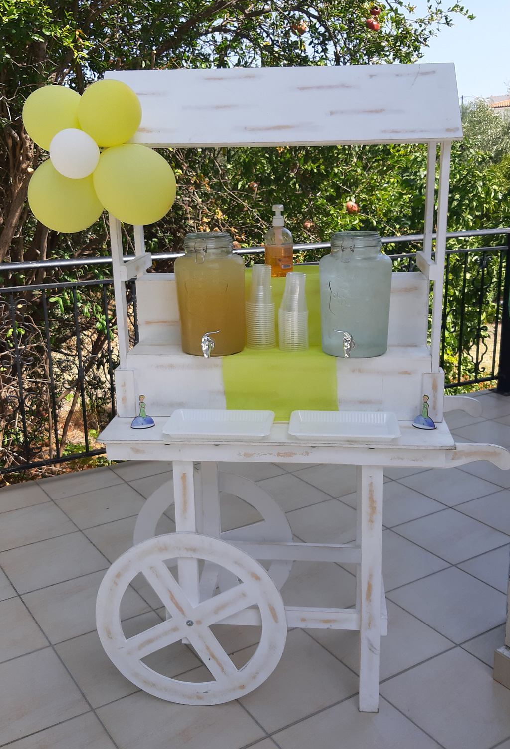 Το καρότσι δροσιάς δίνει μια δροσερή νότα στο μυστήριο σας ειδικά τους καλοκαιρινούς μήνες αφού δίνει τη δυνατότητα στους καλεσμένους σας να απολαύσουν απεριόριστο δροσερό νεράκι καθώς επίσης δροσερή λεμονάδα ή βυσσινάδα ακόμα και παγωμένο τσάι με γεύση της επιλογής σας! Δένει πολύ όμορφα με τον υπόλοιπο στολισμό και εμπλουτίζει την γιορτινή διάθεση.